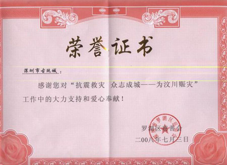 深圳古玩城作为一个热心公益活动的企业,历来在扶危济困、奉献爱心的社会活动中表现踊跃。5月12日汶川地震之后,深圳古玩城当仁不让责无旁贷,连续组织策划了大型“与灾区人民心连心”系列赈灾活动之5月16日“翰墨送真情——支援四川汶川地震灾区专场书画义卖会”,5月17日文博会开幕式“抗震救灾爱心捐款行动”,6月21日“普洱茶人表爱心”义卖活动,以实际行动支援灾区人民早日重建家园,过上幸福生活。由于表现突出,近日受到了罗湖区慈善会的嘉奖。