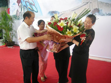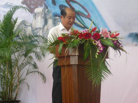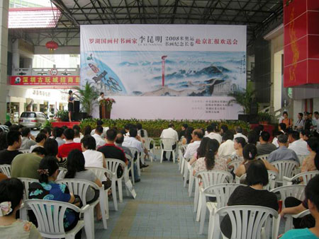2008年7月17日,罗湖国画村书画家李昆明先生2008米奥运纪念长卷赴京汇报展出欢送会在深圳古玩城文化舞台开幕,深圳市副市长梁道行,罗湖区委常委、宣传部部长刘石磊,书画家李昆明,深圳古玩城董事长卓少东等出席,梁道行副市长在欢送会上做了讲话并向李昆明先生献花。