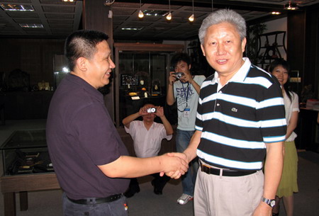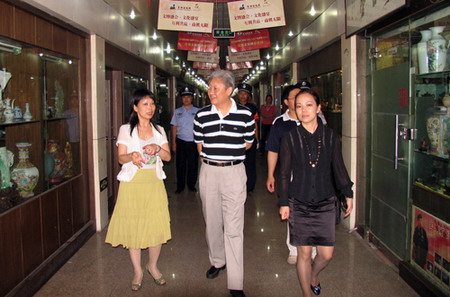 原广东省政协副主席李统书应邀前往深圳古玩城参观。得到古玩城董事长卓少东、执行董事杜豆豆、蒲俊副总经理等的热情接待并认真听取他们有关古玩城现状及未来发展蓝图的介绍。对他们为深圳文化事业所作的贡献给予了充分的肯定与赞赏。