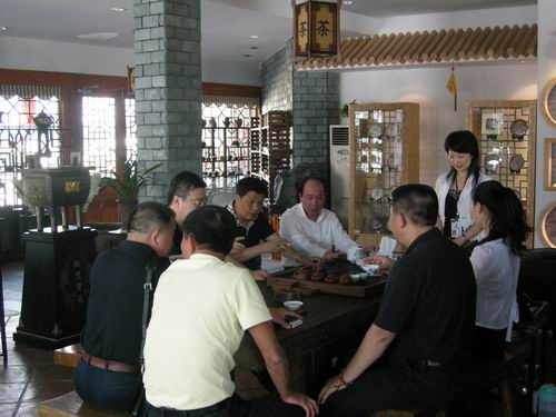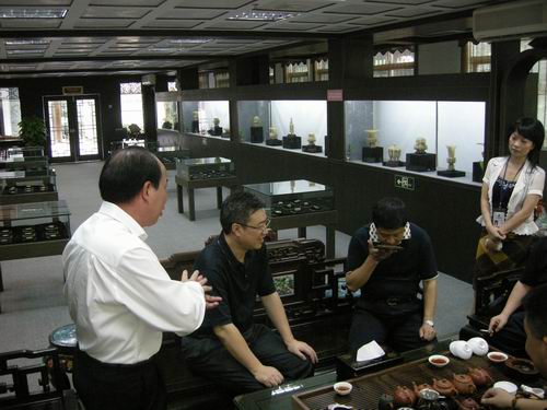 戎铁文一行对深圳古玩城的经营种类和规模表达了由衷的赞叹,并对古色古香的卓氏茶坊、琳琅满目的文物精品区、熙熙攘攘的淘宝市场、翰墨飘香的卓氏画院以及价值连城的卓玉馆玉器等都给与了高度评价。