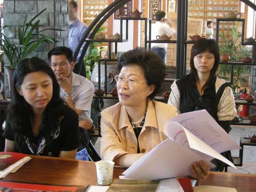 在古玩城卓氏茶坊内,古玩城董事长卓少东就第四届“文博会”深圳古玩城分会场准备情况做了汇报,汇报中详细的介绍了“文博会”深圳古玩城分会场的活动安排及招商状况,文博会期间古玩城分会场准备了珍惜白玉精品、广东省中国当代书画名家精品、宋代陶瓷、寿山石雕、“锦绣茶祖”等五大亮点精品展。招商工作目前也进展顺利,预期到开幕式完成全部招商工作。另外在谈到文博会经费以及安全保卫问题上,卓少东说深圳古玩城文化不是属于古玩城,是属于深圳市人民的文化,是沉淀了中国历史几千年的文化,希望区委区政府能给予一定的支持,保证古玩城正常发展促进深圳市文化产业的良性循环。