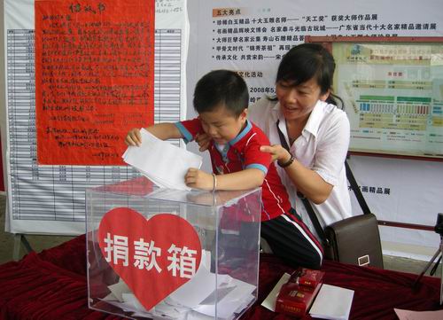 据了解,本次活动一共筹得善款3万多元,是由江西同乡组自发组织,在5月21日他们就发出倡议书,以“一方有难,八方支援”为精神号召广大江西籍商户参与此次捐款活动中来,而此次活动中他们大部分人已是第三次捐款,前两次都是在由深圳古玩城组织的“与灾区人民心连心”活动中,他们自己说,在四川百万灾区人民无家可归,生活困难之时他们有义务要为灾区人民奉献一片爱心,而这也是回报社会在江西九江地震中给予的援助,他们以后也将尽自己最大能力继续为灾区人民重建家园出一分力。