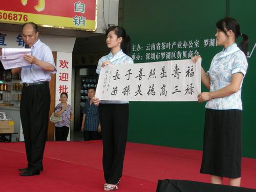 据了解,此次活动由云南省茶叶产业办牵头,组织省内安宁海湾茶业有限责任公司、双江勐库茶叶有限公司、滇红集团有限公司等十家茶叶企业,每家企业捐助不低于5万元茶品送到深圳,在深圳古玩城举行义卖。双江勐库茶叶有限公司还提供了勐库戎氏沱茶礼品共准备了两千份,奉献爱心的每位人士将得到爱心卡一份,凭爱心卡获得。本次所得捐款将由中国基金会专项基金对口支援四川省汶川教育基金会捐建一所云茶学校。