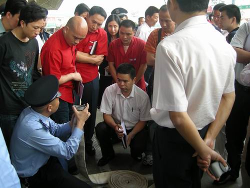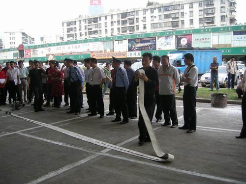 深圳古玩城、大嘉益实业有限公司、逢东实业等公司安保人员接受了培训并在会后进行实地消防模拟演习。在现场安保人员一个个以迅速快捷的动作完成了演习任务:扑灭火势、整理消防水带。迎得了在场人群的赞赏与喝彩。