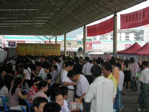 5月30日上午,由深圳市劳动和社会保障局主办,深圳市劳动就业服务中心、罗湖区劳动局、罗湖区黄贝街道办事处协办,深圳市福万家社区服务有限公司、深圳古玩城承办的“就业服务进社区,岗位帮扶到家门”——2008年社区户籍居民现场招聘会在深圳古玩城广场举行。
