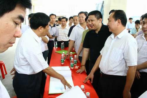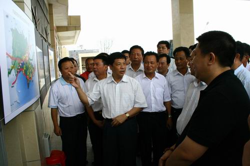 陆丰内湖农副产品海产品批发交易大市场是深圳古玩城投资的大型战略性产业项目。在简朴的项目汇报现场,戎铁文书记认真观摩了深圳古玩城精心制作的关于内湖农批市场的地域、地理、交通、规划、布局、一期二期三期示意图等展板,并不时与陆丰市委书记陈增新、深圳古玩城董事长卓少东及当地陪同人员讨论。