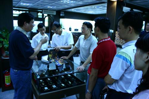 董祖文一行先后参观了深圳古玩城卓氏茶坊、文化广场、卓氏画院、卓玉馆以及部分商铺。在参观时董祖文说,深圳古玩城很早就听说过,名气很好,一直想来,现在看到真的是个大的文化产业,很不容易。深圳古玩城卓玉馆馆长王跃庆陪同参观并详细的介绍了古玩城三大支柱产业、淘宝市场以及古玩城发展状况,并希望能与小榄镇进行更多的文化交流。