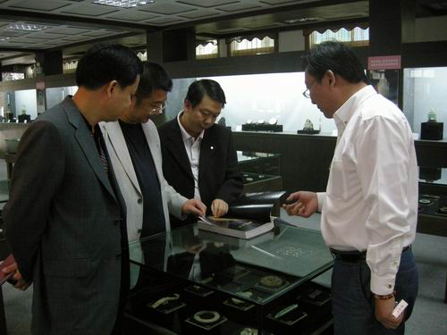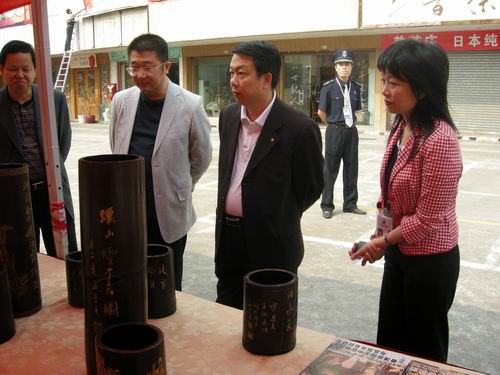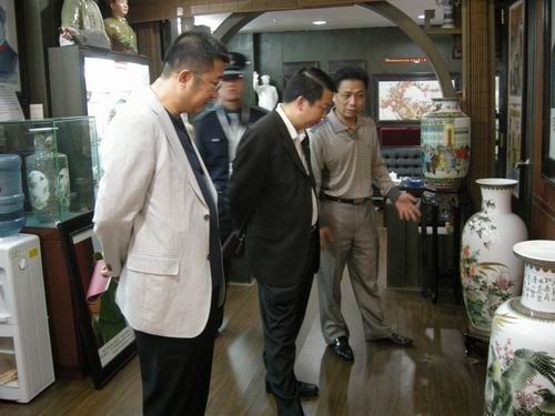 在交流会现场,卓志强一行先后参观了广场展位、古玩城珠宝区、老件区、毛主席专用瓷馆、华夏遗珍馆及卓玉馆等地,并听取了深圳古玩城杜豆豆对本届交流会状况及深圳古玩城做了详细的介绍。卓志强对深圳古玩城能有如此大的规模,并能坚持办出这么有特色的展会感到惊叹,他说,这展会办得很好,应该继续坚持下去。