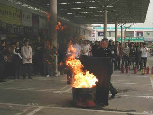 图4 (古玩城全体员工及部分商户现场观看灭火技巧)