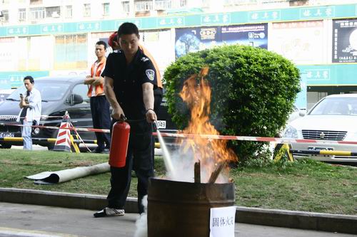 演练开始,深圳古玩城安保人员先后进行了,液体、固体火灾灭火演习,只见安保队员们手拿灭火毯和灭火器准确而有序的将火源扑灭。