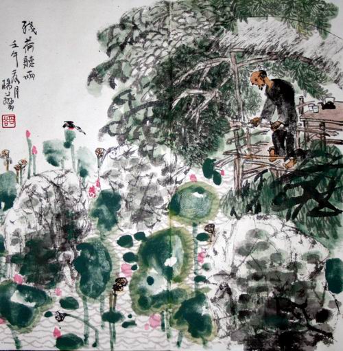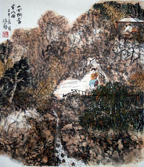 杨艺先生在介绍自己学画感受时如是说:我是名不出乡里的画家。青年入京拜师习书画,入世后几经易辙,先后从事新闻、宣传、哲学理论工作凡二十余年,知天命之年重操画笔,便一头扎进故里山水间,风餐露宿,几忘归家。在心追手摹,感悟自然中,始知传统功底太亏,于是蛰居京郊乡里,日夜临摹宋元以降名家山水,历时六年,临画近百幅,似觉窥得传统殿堂之一斑。然不才愚钝,未进门便已往返,昔时写生真山水之感受,如烟散去,作画,落墨便入古人前人“牢笼”,心甚苦,体重骤减,友皆谓余有疾,不可救矣。于是乎返乡,备寿终正寝,不意见曾相濡以沫之故里山川,心豁然开亮:什么古人前人,统统退避,我,还是画我自己。但此后作画,常有高人暗中助我,诸如八大、石涛等,更多则是宾虹夫子。又历三年,从山林出,自觉作画有自己面目,病亦不治而愈。于是再度进京,以古稀之年参加中国艺术研究院办的国画高研班,进一步开茅塞,启性灵,以不断完善自己的绘画创作。