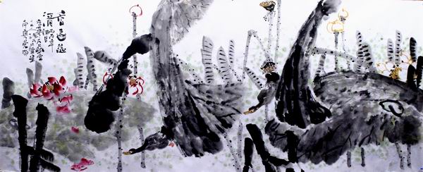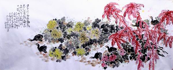 这次展出有五十余幅作品,大的八尺花鸟,足见其气势和笔墨功底,小的册页可见其细腻笔触及文人雅趣。