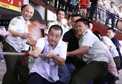 参赛队由分安管一队、安管二队、安管三队、机关综合队等四队组成,每队10人,采取抽签列序,三局两胜晋级制。随着裁判员的一声哨响,拔河比赛由安管一队与安管三队对决拉开帷幕。