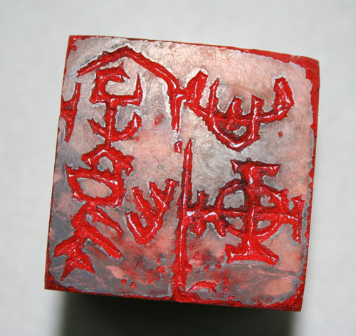 拾级迂回的楼梯,穿过幽静的画廊,走进卓氏画院的内门,几张沙发、一张案台、两方镇纸,向左望去,一片红色放大了的印章串联着挂满了一面墙,展示了黄明先生艺术生涯近30年的精华之作。黄明先生身着红色上衣,与其作品和谐一体。此刻的案台旁,黄明先生已经端坐开来,左手握着一方印章石,右手扬起篆刻刀,挑刀、勾线、深凿,黄明先生神情安宁、专心致志,时而面露微笑,时而凛然一气,现场更是鸦雀无声,观众屏气凝神,不足三分钟,印章一气呵成,黄明先生站起身来,将印章在印泥上不断扑打,而后双手握着印章,在宣纸上深压,轻身跃了几下,印章拿开,纸上跃然“字为心画”四个字,其篆书遒劲有力、风姿清健、骨气洞达。“七分篆三分刻”,在这里俨然而出。黄明先生向观众微笑鞠躬,并现场解释了其中的含义——学为所得,字之所悟,乃是心灵的真实写照。