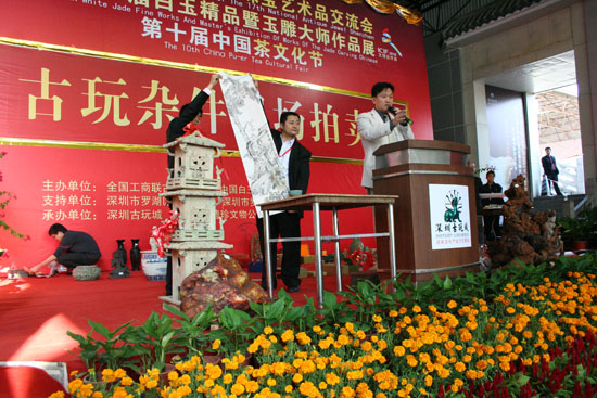 11月22日下午2点半,“第十七届全国珠宝艺术品交流会”上,一场精彩的“古玩杂件现场拍卖会”在深圳古玩城多功能舞台举行,惹来了几百位竞买商,热闹了整个古玩城。