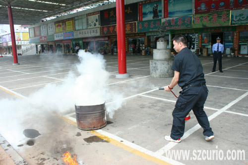 文博会开幕在即,安全工作迫在眉睫。4月23日上午,深圳市公安局消防特勤大队副队长姚汉富、消防支队特勤大队防火科陈小武警官、罗湖特勤中队队长周跃进一同来到深圳古玩城,对安管部各级人员进行了消防知识的考查,并对消防安全设施进行了全面细致地检查。
