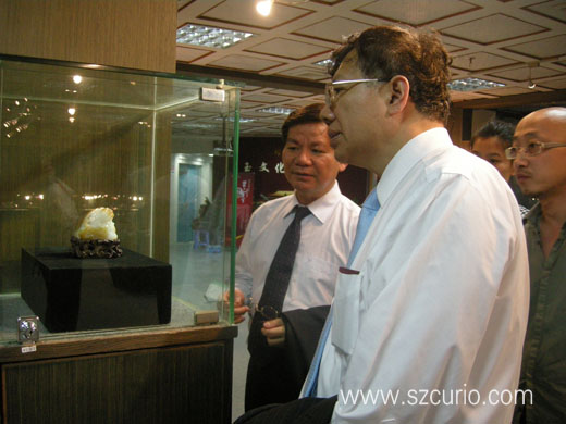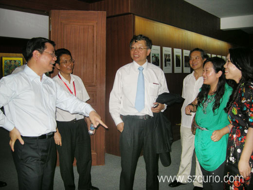 5月15日下午,世博会中国馆馆长徐沪滨来到文博会深圳古玩城分会场参观。徐沪滨馆长仔细参观了古玩城精品区、苏派玉雕大师精品展、王锡良等泰斗级中国百名陶艺名家精品展、倪顺生大师紫砂壶作品展、钱雪梅大师紫砂作品展、希热布大师唐卡艺术展、黄明篆刻艺术展和卓玉馆藏品展。他感叹地说:虽然我是第一次来到深圳古玩城,但是被古玩城的展品、藏品的档次、规模和特色深深震撼。世博会是世界文明的交流平台,今年深圳的文博会也实现了与上海世博会的立体对接,体现了深圳作为设计之都的独特魅力和文化内涵。徐沪滨馆长还盛情邀请深圳古玩城到世博会特别是到世博会中国馆参观访问,相信集文明之大成的世博会和深圳文博会一定产生更多的共振。(小罗)