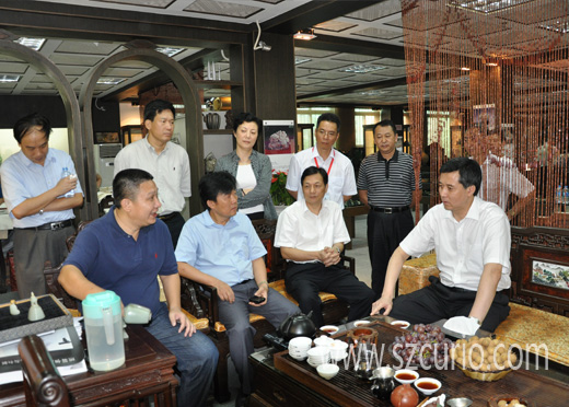 8月6日下午,市委常委、纪委书记周林祥一行来到深圳古玩城参观指导工作,深圳古玩城董事长卓少东向周林祥书记介绍了深圳古玩城的发展历程和作为国家文化产业示范基地、文化+旅游基地的发展情况,并对深圳古玩城连续五届承办文博会分会场的情况和成绩作了汇报。