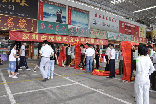 9月21日下午,深圳古玩城淘宝市场热闹非凡,深圳古玩城一百多名员工和领导欢聚一堂,举办欢度中秋拓展活动。大家忘记年龄、忘记身份、忘记性别,在有趣的团队游戏中体验个人能力与团队协作的精彩结合,共度中秋佳节。