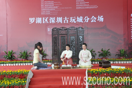 15日下午,文博会深圳古玩城分会场上演了一场中国文士茶和韩国茶艺表演,吸引了众多市民和茶文化爱好者。