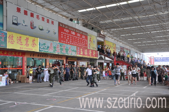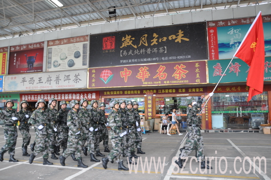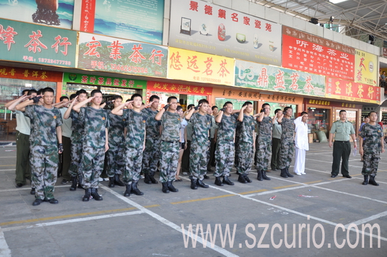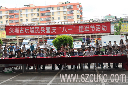 2011年8月1日古玩城民兵营在公司大广场举行庆“八一”“迎大运”演练活动。出席活动的政府相关部门领导有:罗湖区武装部刘志鹏副部长;黄贝岭街道办党工委委员、武装部部长陈宗灵;干事范孝军及东深公安分局综合科副科长陈熙斌、东深派出所副所长高奇、何桂荣警官;黄贝派出所韦宗良警官;古玩城公司领导有公司运营总经理林金辉、执行董事杜豆豆、古玩城民兵营长卓少望、应急大队长梁建东等相关领导。