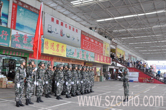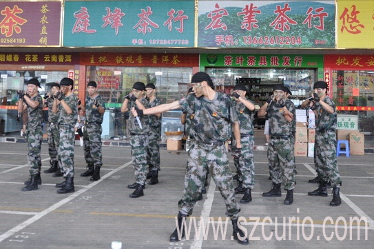 下午14:30分,活动正式开始,首先由武装部领导分别给大家做了讲话,肯定了古玩城过去十几年以来,各项管理工作不断的得到规范和提升,特别是安全管理工作得到了武装部的认可,并批准古玩城成立了民兵营,今天大家共同欣赏及参与古玩城民兵营庆祝中国人民解放军建军84周年演练活动。武装部希望通过本次活动,使古玩城全体员工提高管理、服务意识;提高和谐平安及安全防范意识,最后武装部领导预祝本次活动顺利成功”。