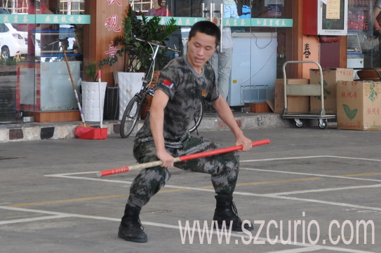 民兵们军歌嘹亮,使人激情燃烧;古玩城应急连方队威武雄壮步伐整齐,救灾抢险,应急防暴,大运安保都会有他们的英姿。整场活动:军事演练项目有如行云流水、气势恢宏,给人以强烈的视觉冲击感和震撼力,充分表现古玩城民兵强大的战斗力和防暴队形的威慑力;文艺表演精彩纷呈;少林太极令人大开眼界。古玩城民兵营可谓藏龙卧虎,高手如云,绝活还真不少。压轴表演由古玩城民兵营突击连给大家表演舞蹈“刀锋”,只见他们突击似波涛汹涌,出手如雷电狂风。