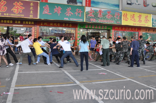 最后是游戏互动和拔河竞技,充分体现了古玩城民兵团结协作,勇争第一的精神面貌。最后由罗湖武装部刘副部长、黄贝街道办武装部陈部长给所有参与活动的民兵发放礼品劵,至下午17:30分活动圆满结束。