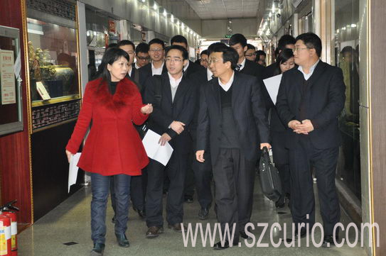 2月10日下午,深圳市交通银行企业部总经理岑尚崇率深圳市各支行行长及经理来深圳古玩城参观考察工作,深圳古玩城总经理林金辉、执行董事杜豆豆、运营总监杨锐锋、物业总监王赟、财务总监金艳秋、财务经理肖冰等出席了此次接待活动。