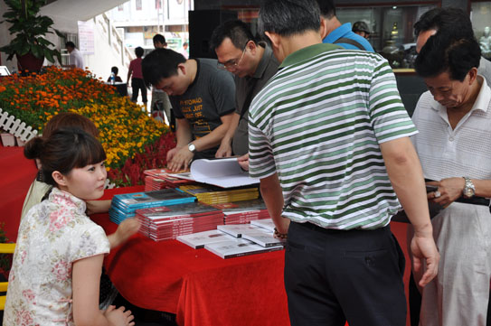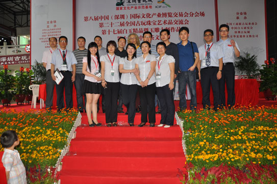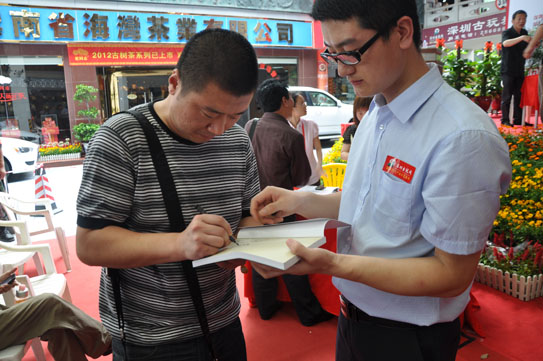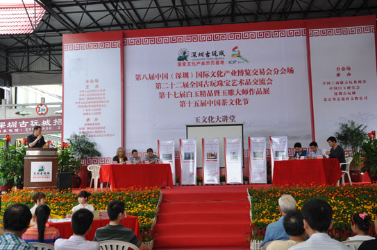 19日下午,文博会深圳古玩城分会场的传统文化项目——玉文化大讲堂如期举行。本次玉文化大讲堂邀请到六位业内赫赫有名的重量级玉雕大师,分别是易少勇,王金忠,吴灶发,陈健,黄杨洪,蒋宏利,六位大师不仅在现场为观众讲解玉文化知识,解答观众关于中国白玉投资的相关疑问,还带来了他们从业几十年以来的心血总结——《中国当代玉雕代表人物》丛书,并举办现场签售活动。许多白玉爱好者慕名前来,将签售台挤的水泄不通,短短二十分钟时间,主办方带来的百余套图书便宣告售罄。