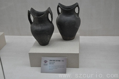 黑陶马鞍口双耳罐一对
