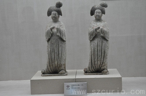 彩绘仕女俑一对