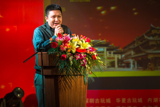晚会上,深圳古玩城董事长卓少东先生发表了振奋人心的讲话,他表示,2014年是深圳古玩城拓展项目全面开花的一年,北京的华夏古玩城和汕尾的内湖农批项目都将盛大开业,深圳古玩城面临前所未有的大机遇、大发展,这也是众多古玩珠宝艺术界经营商家入驻北京的绝佳机遇。深圳古玩城总经理魏总也发表了热情洋溢的祝酒辞,为深圳古玩城以及所有商家、现场嘉宾、全体同事送上美好的祝愿。