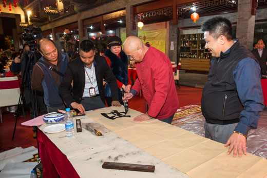 此外,晚会现场还邀请了中国艺术学会常务委员会常务委员 中国当代艺术协会副主席 中国国家书画院副院长陶生源老师、深圳市书法家协会会员 广东省书法家协会会员 号永和居士的李前明老师、甘肃美术家协会会员 中国书画研究院一级创作员 素有“王老虎”之称的王明老师以及制作《历届中外奥运冠军印谱》获得大世界基尼斯之最证书的徐华明老师、青年书法家周鸿健老师等书画大师,大师们现场泼墨挥毫,“年年有余”、“厚德载物”等一幅幅寓意吉祥、笔力遒劲的书画作品让现场观众大饱眼福,董事长卓少东先生也意兴大发,亲自上场挥毫,给热烈的晚会现场添上一缕墨韵书香。