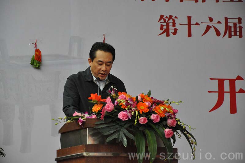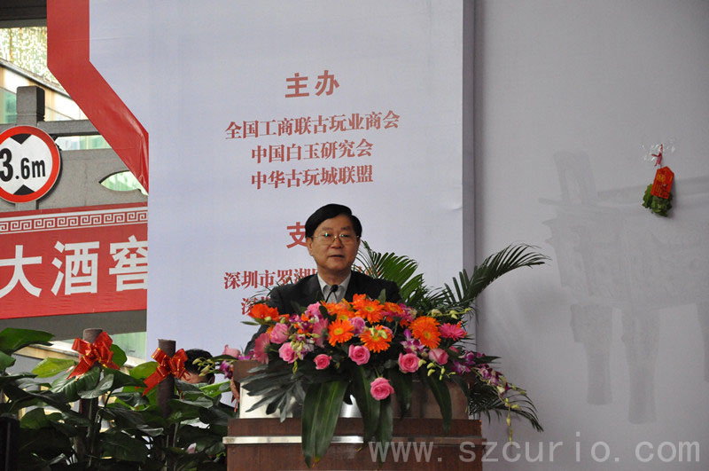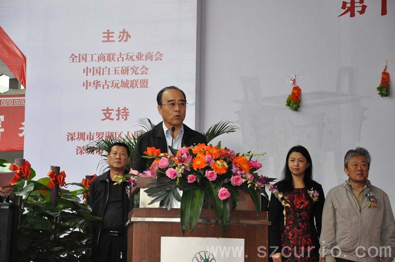 开幕式上,深圳古玩城总经理代表深圳古玩城董事长、全体员工以及3000多家驻场商户对前来参加盛会的领导、嘉宾、收藏爱好者表示热烈的欢迎。罗湖区人民政府区长贺海涛代表罗湖区委区政府发表了热情洋溢的讲话,他说,在贯彻十八大精神的形势下,罗湖区文化产业进入了大发展大繁荣时期,并充分肯定了深圳古玩城作为罗湖区唯一一家国家级文化产业示范基地在文化产业发展方面作出的示范效应。深圳市人大常委会常务副主任谭国箱代表深圳市委市政府重要讲话,高度赞扬了深圳古玩城在文化自信、文化自觉方面做出的成绩。