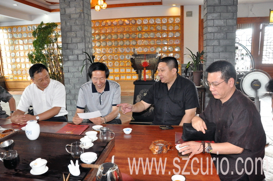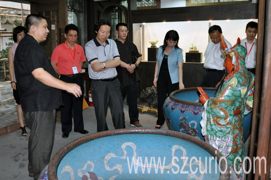 随后,刘玉珠司长一行在深圳古玩城董事长卓少东的陪同下,参观了卓氏茶坊、淘宝市场、百大酒窖、卓玉馆等,刘司长对古玩城的发展和成绩表示肯定和赞赏,并鼓励深圳古玩城继续发扬光大,更好地发挥国家文化产业示范基地的示范、窗口和辐射作用。