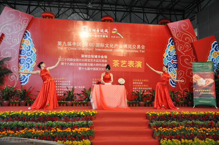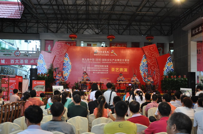 5月16日下午,第九届文博会深圳古玩城分会场、第十七届茶文化节拉开帷幕,“杨门女将”鼓舞表演、多派茶艺现场展示,为参展客商和市民奉献了一场独具特色的茶文化盛宴。