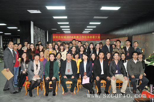 3月7日下午,“深圳古玩城2014年工作任务部署大会”在百大酒窖五楼卓玉馆隆重举行。深圳古玩城总经理魏强、凌阳实业总经理林初起、执行董事杜豆豆、财务总监金艳秋、营销总监曹振宙、行政人事总监谭波、储备物业总监郑清斌、刘仁军等领导及各部门员工近100人参加了会议。