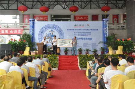 5月18日下午,第十届文博会深圳古玩城分会场活动之古玩杂件现场竞拍会如约而至。作为每年两度的传统活动,深圳古玩城的竞拍会已经拥有了一大批相对固定的收藏爱好者。只见竞拍现场座无虚席,伴随着拍卖师的解说,一件件拍品一一登场。在经过两个多小时展示、解说、竞价之后,一百多件拍品均有了自己的归属。