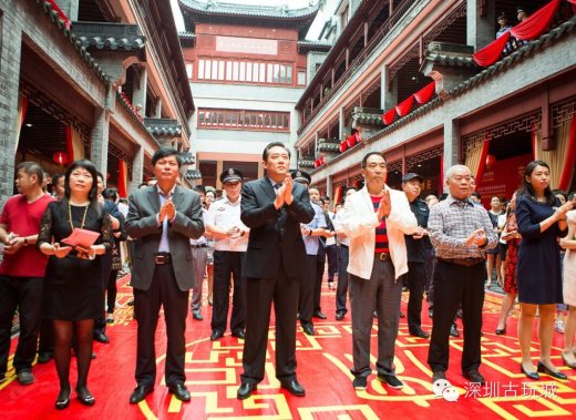 2015年5月13日上午10时,第十一届文博会中国(深圳)国际文化产业博览交易会分会场、第二十八届全国古玩珠宝艺术品交流会、第二十三届中国白玉精品暨玉雕大师作品展、第二十一届中国茶文化节在深圳古玩城百大酒窖中庭广场盛大开幕!罗湖区领导中共深圳市罗湖区委副书记、区人民政府区长贺海涛、罗湖区委常委、宣传部长刘石磊、罗湖区委常委、区委(政府)办主任贾保安,文学界巨擘——原鲁迅学院副院长白描先生、北派玉雕掌门人柳朝国先生、玉雕大师田建桥、张铁成、王建、李东、康杰、徐凯、余佩松等,书画界代表卓孝强、陶生源等,掌眼董事长付红伟、上海云洲古玩城总经理吴中泽以及金融界、艺术界、古玩行业协会、中华古玩城大联盟、媒体朋友共计300余人参加了开幕式。