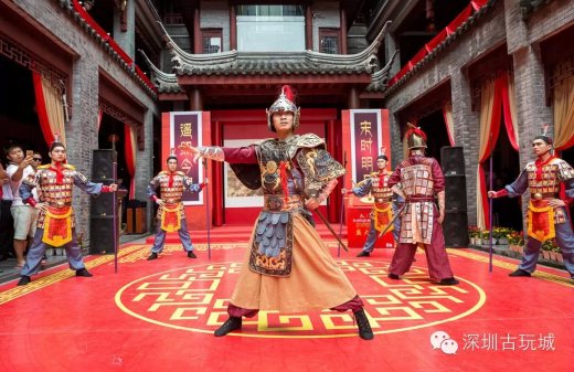 宋代是个有情怀的时代,文人风雅潇洒,武将忠烈无畏。精忠岳飞,杨门忠烈,皆为世人传颂景仰。在本次开幕式现场,深圳古玩城为观众上演了两场情景剧——“岳母刺字”、“穆桂英挂帅”。巾帼须眉皆是英雄,文才武将都在宋代。现场嘉宾对这一新颖的演出节目大加赞赏。