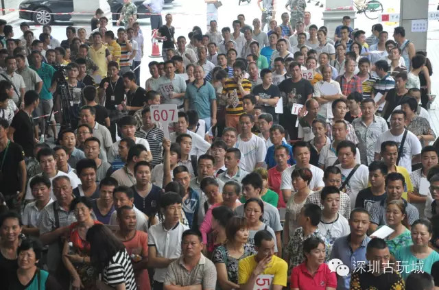 6月14日下午,深圳古玩城2015年下半年度淘宝摊位拍卖在多功能文化舞台盛大开拍。拍卖活动经过近5个小时的激烈竞价,390个的摊位均以公开竞拍的形式拍出,来自深圳、广州以及全国各地的古玩经营商约三百多人竞拍到了自己心仪的摊位。