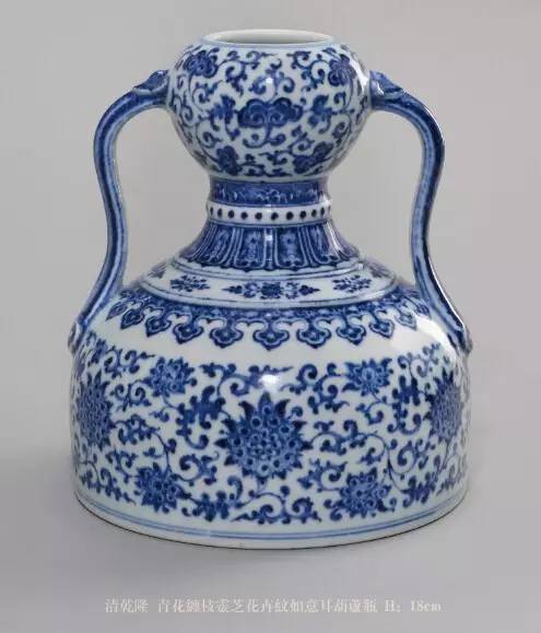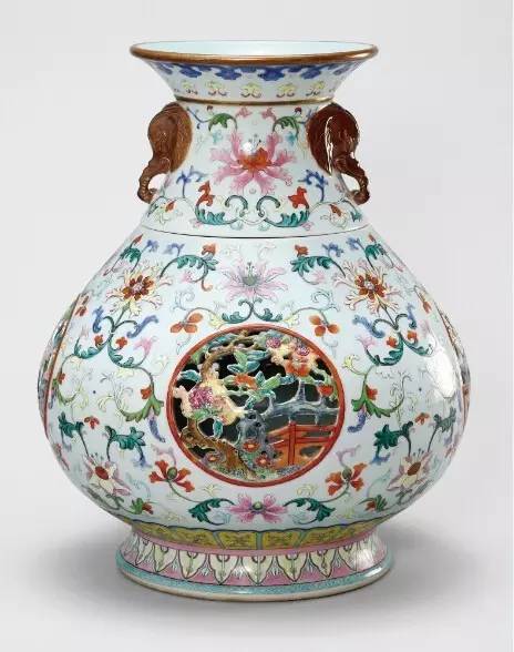 △清乾隆 洋彩開光鏤空“四時富贵”圖象耳轉心瓶 H:41.2cm