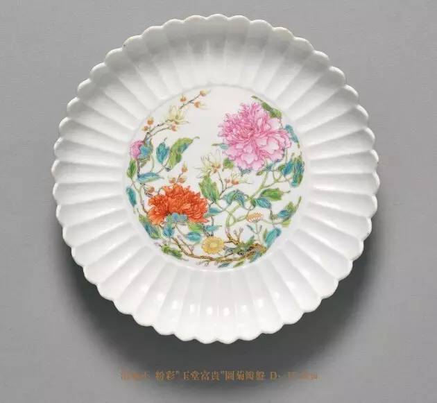 △清雍正 粉彩“玉堂富贵”圖菊瓣盤 D:17.8cm