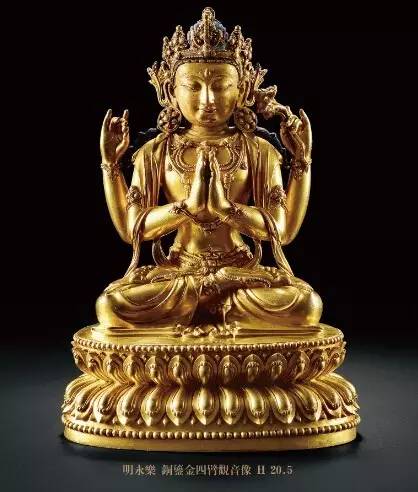 △明永乐 銅鎏金四臂観音像 H 20.5