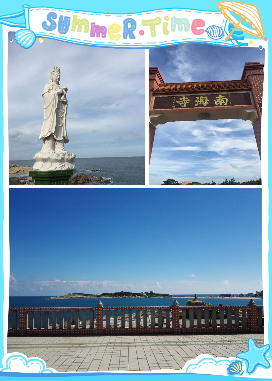 25日,经过两个多小时的车程,我们到达了第一个目的地——南海寺。南海寺,原称观音宫,位于红海湾经济开发试验区。有观音阁、观音送子、唐僧取经、郑成功南征、弥勒化缘等石塑组像景观,和300米观海长廊。登寺远眺,水天一色。漫步于礁屿岬岩之间,各种圣迹奇景令人心旷神怡,流连忘返。观完景后,坐车来到红海湾遮浪南澳半岛,大家在一片碧海蓝天中“畅游”。