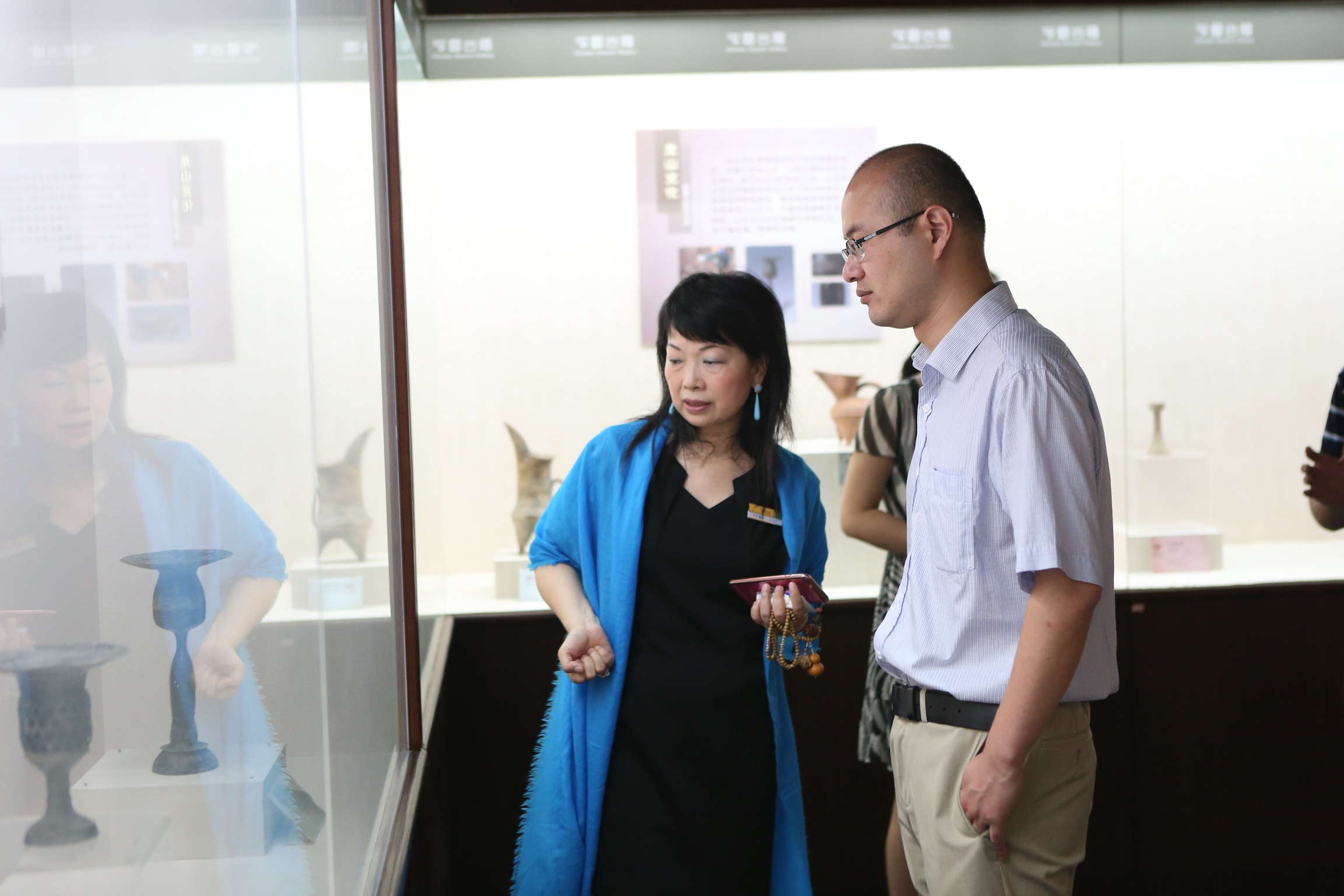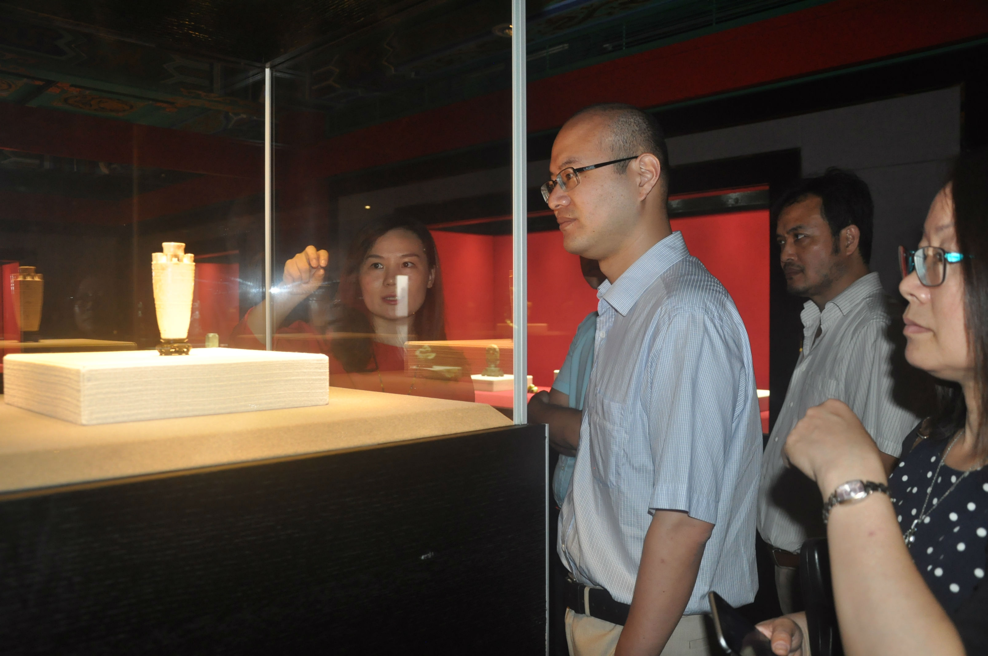 17日上午,国务院发展研究中心、市场经济研究所王青博士一行莅临深圳古玩城参观考察。罗湖区经济促进局局长黄毓琼、深圳古玩城行政董事杜豆豆、总经理马建臻、华夏遗珍博物馆馆长鲁婷婷等陪同参观。