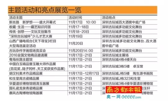 除了文玩文创集市,11月17-21日举办的全国文物商店邀请展,以北京市文物公司、广东省文物总店、广州市文物总店为代表的来自全国各地的20多家国有文物商店,集中深圳放货,玉雕百花奖、陆子冈杯、天工奖获奖作品、高古瓷、明清玉器精品汇聚深圳古玩城。11月19日,深圳古玩城将与星光演艺传媒共同举办少儿才艺大赛,百余名少儿齐聚现场,唱歌跳舞、走秀快板,现场切磋才艺,进行一场生动活泼、丰富多彩的才艺大赛。