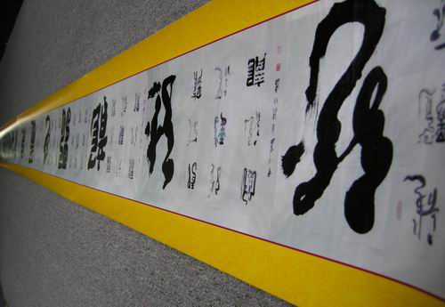 2008个龙字、无一重样,2008幅图画,各不尽同,2008米长的书画卷里浓缩了中国上下五千年文明史。昨天下午,古玩城展出了入选“全国百名奥运书画家”的李昆明历经15年创作的部分奥运书画长卷,据悉,这幅作品还将搭乘奥运圣火,在国内火炬传递所有经过的城市展出。