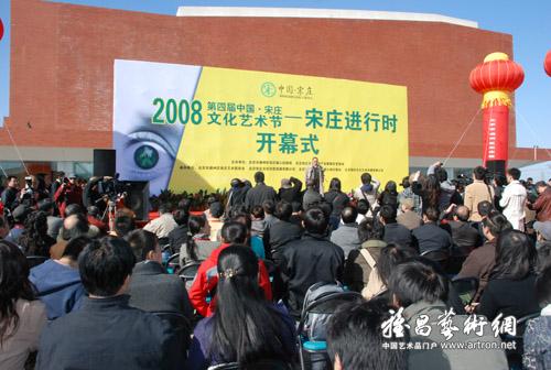 “2008第四届中国•宋庄文化艺术节——宋庄进行时”于2008年10月25日上午10:00在宋庄美术馆东侧举行开幕仪式。各级领导、各地嘉宾、众多学者、参展艺术家等汇聚一堂,各艺术机构、宋庄民众、国内外友人也纷纷慕名前来,盛况空前。